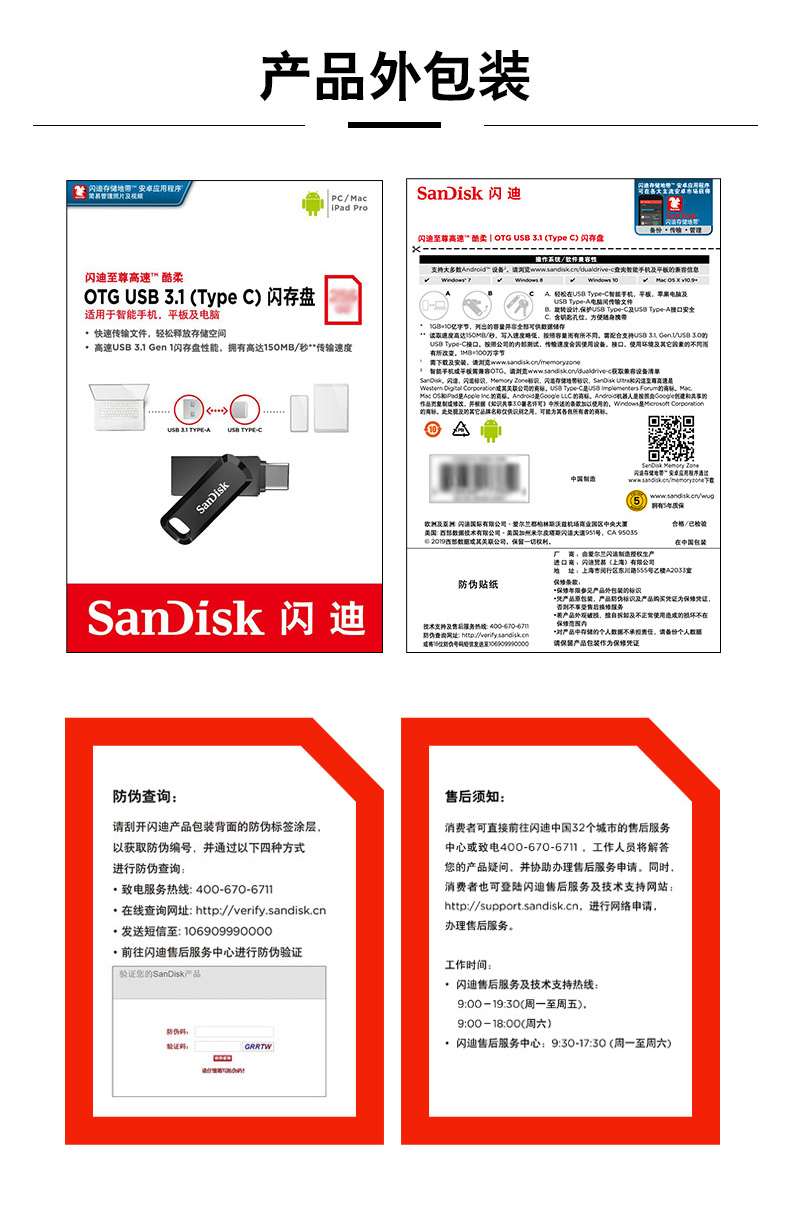 闪迪 SanDisk 64GB Type-C USB3.1手机U盘DDC3至尊高速酷柔 传输速度150MB/s 双接口设计 智能APP管理软件