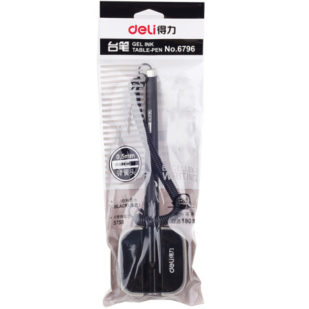 得力 deli 0.5mm商务办公桌面台笔签字笔 可粘贴台式中性笔单支 6796灰